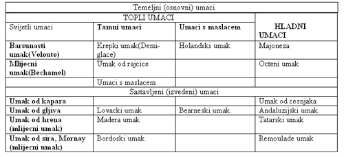 temeljci, umaci, hladetine i garniture.