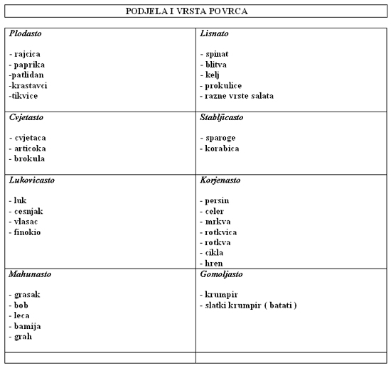 vrste povrca koje je na raspolaganju s obzirom na mogucnosti i