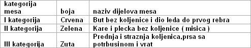 glave,koze,donjeg dijela nogu I unutarnjih organa ) od 25 kg do 120 kg.